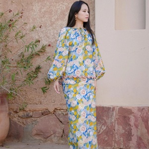 Последнее, Малайзия, с цветочным принтом, Абая, Курунг, с длинными рукавами, баджу кебая, круглый вырез, баджу Курунг