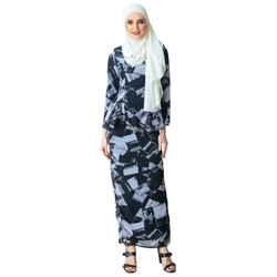 ชุดเดรส Baju kurung พร้อมฮิญาบชุดเดรสแบบดั้งเดิมพิมพ์ลายผ้าบาติกอิสลาม